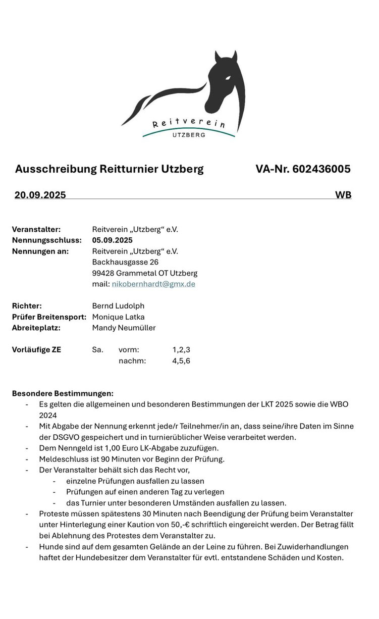 03.10.2016 die durch den FN Richter Bernd Ludolph abgenommene Prüfung im Reit,- und Pensionsstall Utzberg.